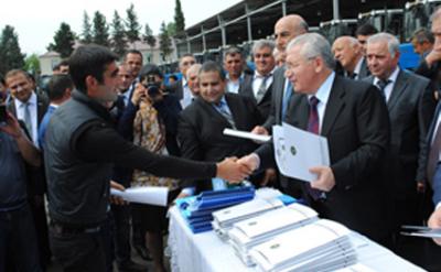 Sonra respublikanın müxtəlif rayonlarından gəlmiş fermer və sahibkarlara traktorların sənədlərini təqdim edən nazir Heydər Əsədov dövlətimizin başçısının aqrar sahənin inkişafına göstərdiyi diqqət və qayğıdan danışıb.