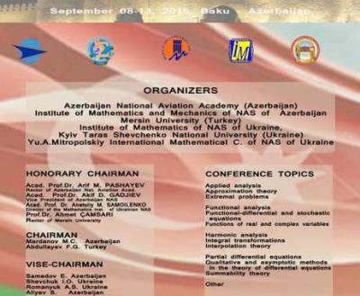It is an Azerbaijani-Turkish-Ukrainian scientific conference in the field of mathematical analysis, differential equations and their application organized by Azerbaijan National Aviation Academy, Institute of Mathematics and Mechanics, Mersin University (Turkey), Institute of Mathematics of Ukraine, Kyiv Taras Shevchenko National University and Yu. A. Mitropolskiy International Mathematical Center of Ukraine.