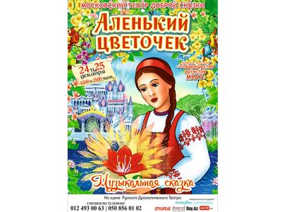 В канун Нового года, 24 и 25 декабря, актеры Московского театра доброй сказки (Молодежная группа театра "Товарищество артистов МХАТ") представят на сцене Азербайджанского государственного русского драматического театра имени Самеда Вургуна в Баку музыкальную детскую сказку "Аленький цветочек", сообщили в пресс-службе театра.