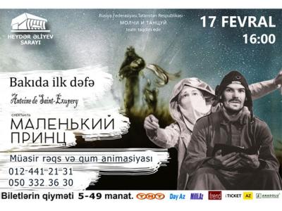 Во Дворце Гейдара Алиева, 17 февраля в 16.00, российский театр "Молчи и танцуй" и художник Елена Ведерникова представят спектакль "Маленький принц".