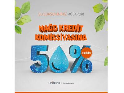 "Пусть ваша жизнь будет чистой как вода! А свои планы на весну Вы можете осуществить, взяв наличный кредит в Unibank, в рамках кампании "Sizin üçün olsun". До 20 марта, каждый, кто обратится в Unibank, получит скидку в 50 процентов на комиссию наличных кредитов. Годовая эффективная процентная ставка кредита начинается от 13 процентов (годовая от 23 процентов). Кроме этого, кредит выдается с льготным периодом на три месяца. Клиенты не будут оплачивать основную сумму ежемесячных платежей первые три месяца, оплата начнется с четвертого месяца", - говорится в сообщении банка, распространенном во вторник.