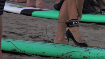 Девушки на шпильках катаются на серфах – ВИДЕО